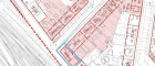 Die gesamte Grundfläche liegt bei 303qm und besteht aus zwei nebeneinander liegenden Grundstücken (182qm+121qm) die zu 100% bebaut werden können.