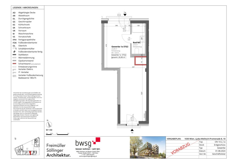 Die BWS entwickelt hier bis April 2026 111 geförderte Wohnungen und 9 Geschäftslokale.