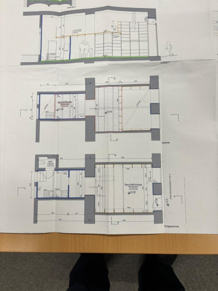 Straßenseitig gelegener, lichtdurchfluteter Verkaufsraum mit bodentiefem Schaufenster (130 cm breit), optimal zur Präsentation von Produkten und zur direkten Ansprache von Passanten. Im hinteren Bereich befinden sich eine Teeküche sowie ein WC.