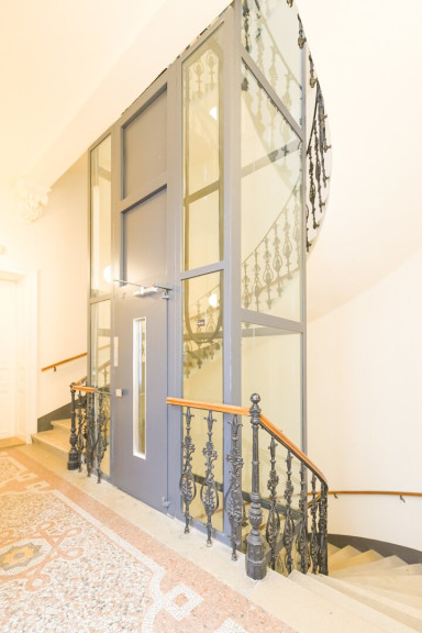 Parkett, Fliesen, Gas, Etagenheizung, Personenaufzug, Teeküche