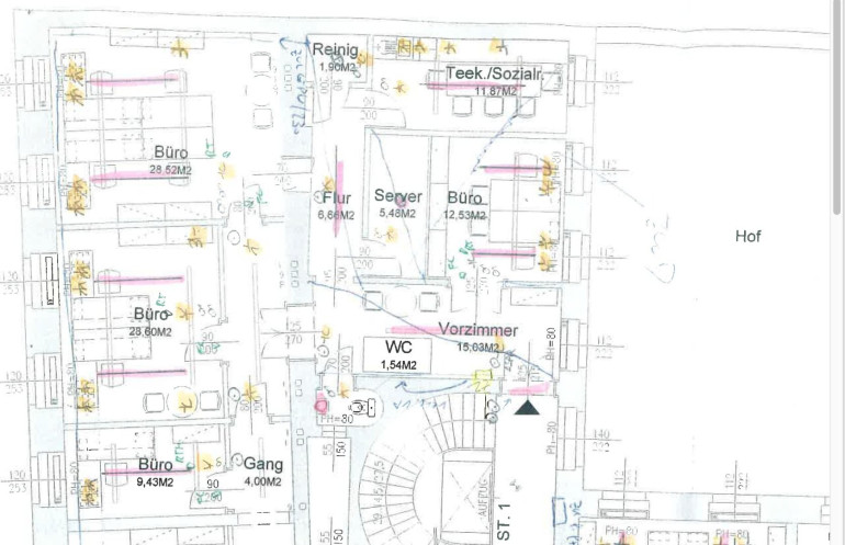 4 separat begehbare Büros, Einbauküche mit Essplatz, Serverraum, Vorraum,
