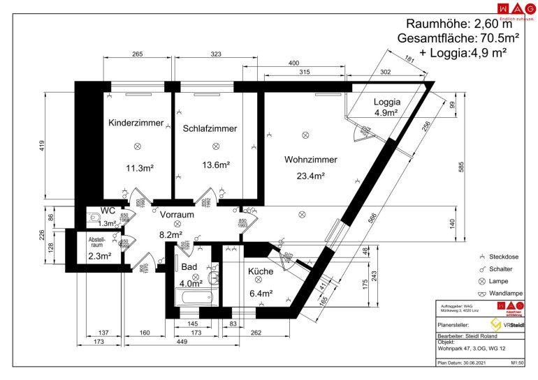 - Wohnfläche gesamt: 70,50 m²