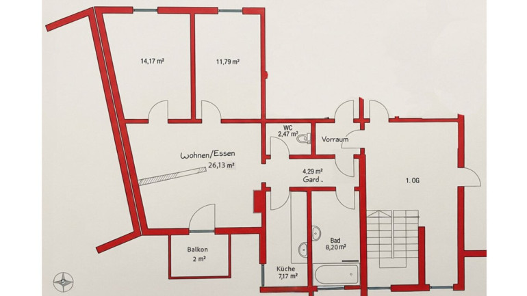 Die 3-Zimmer Wohnung befindet sich im ersten Obergeschoss und ist wie folgt ausgestattet: