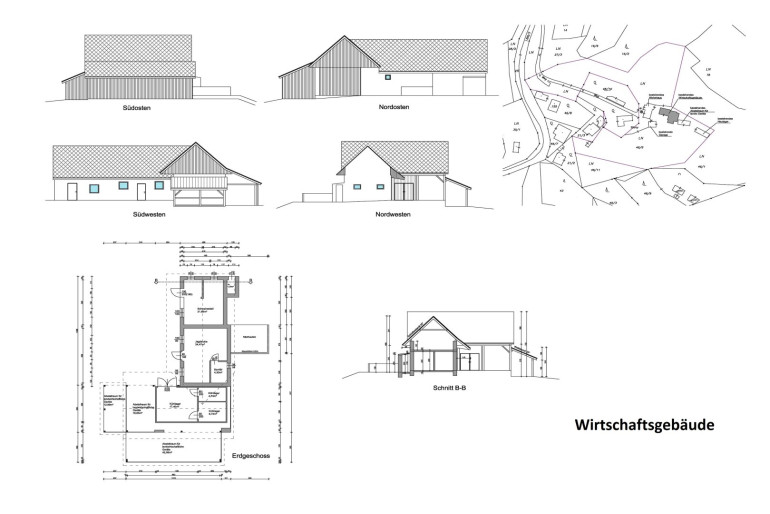 Das Hauptgebäude, ein geräumiges Einfamilienhaus mit etwa 185m² Wohnfläche, befindet sich derzeit in entkerntem Zustand, bereit für Ihre individuellen Gestaltungsideen. Neben dem Haus stehen mehrere Nebengebäude zur Verfügung, darunter eine Jagdstube, ein Kühllager, ein Sanitärbereich und vielseitige Lagermöglichkeiten, die allesamt mit ein wenig handwerklichem Geschick im Handumdrehen revitalisiert werden können.