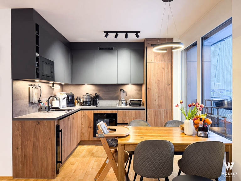 Ein besonderes Highlight ist der ca. 85 m2 große Eigengarten, der ca. 17 m2 große Balkon und die maßangefertigte Einbauküche von Coraggio.