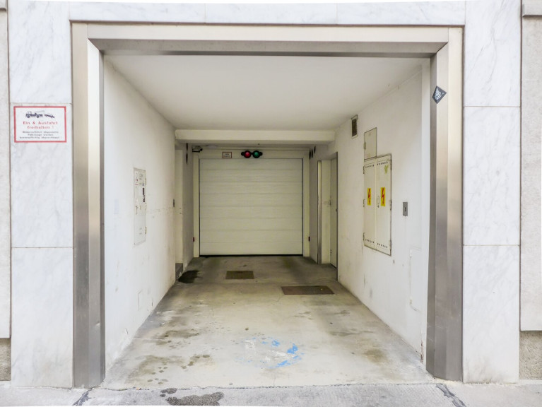 Der Stellplatz befindet sich in der Tiefgarage eines gepflegten Gebäudes in der Antonigasse.