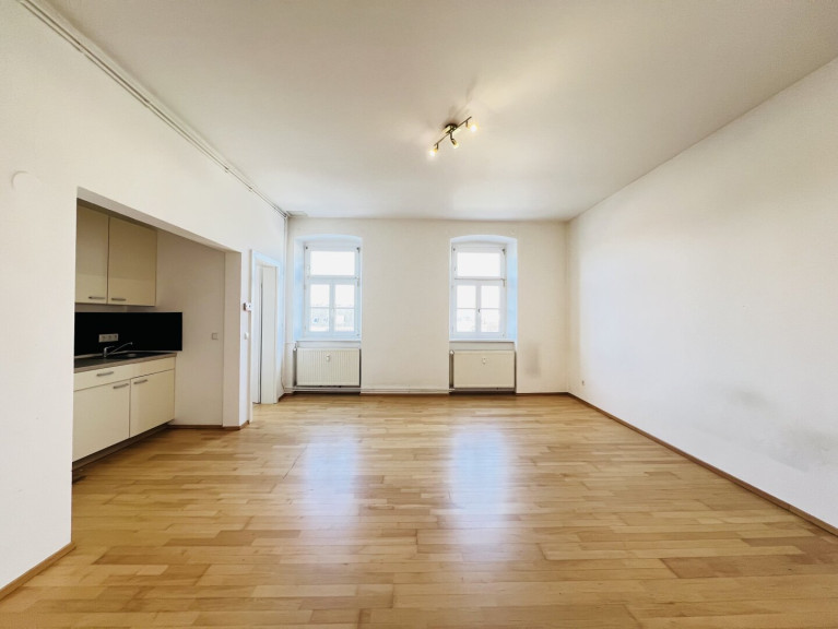 Die Wohnung gliedert sich in: Vorraum, Wohnküche, Schlafzimmer, Dusche mit WC