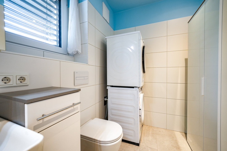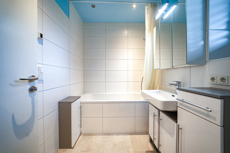Ein modernes Tageslichtbad mit hochwertiger Sanitärausstattung rundet das Angebot ab. Große Fensterflächen mit 3-fach Isolierverglasung sorgen für viel Tageslicht und ein freundliches Ambiente.