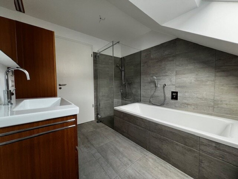 Die hochwertige Ausstattung mit edlem Parkett verleiht den Räumen ein elegantes Flair. Das Badezimmer ist ein wahres Wohlfühlparadies – ausgestattet mit einer Badewanne und einer separaten Dusche, bietet es den perfekten Ort, um nach einem langen Tag zu entspannen. Ein Fenster sorgt für frische Luft und Tageslicht, was den Raum zusätzlich aufwertet.