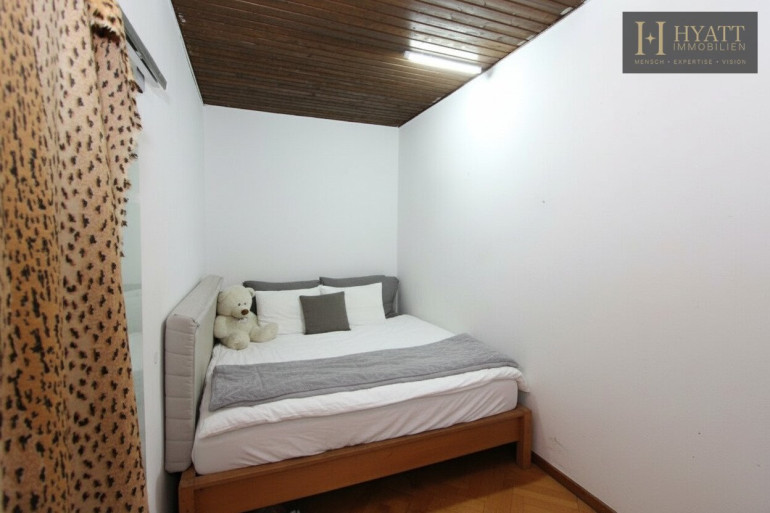 Daran anschließend befindet sich das Wohnzimmer mit rund 26 m², das durch seine Größe flexibel nutzbar ist – beispielsweise mit einem abgetrennten Schlafbereich (1,5 Zimmer-Layout).
