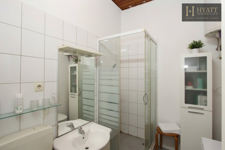 Das Badezimmer und das separate WC befinden sich in einem gepflegten Zustand.