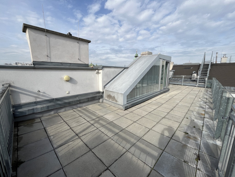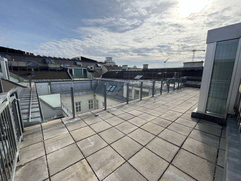 Wohnen im Herzen von Wien - direkt an der Freyung, im Palais Hardegg, gelangt im 2008 ausgebauten Dachgeschoß diese großzügige 3-Zimmer-Wohnung mit zwei Terrassen auf 5 Jahre befristet (mit Verlängerungsoption) in Vermarktung.Die Wohnung erstreckt sich insgesamt auf ca. 135 m², drei Zimmer und zwei Terrassen - sie teilt sich wie folgt: