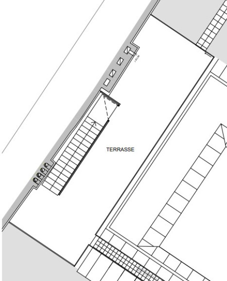 Auf der Wohnebene gibt es eine Terrasse mit ca. 30 m², welche vom Wohnbereich als auch vom Schlafzimmer 2 aus begehbar ist. Vom Wohnbereich aus führen Treppen in die obere Etage zu einer zweiten Terrasse mit weiteren, ca. 39 m².