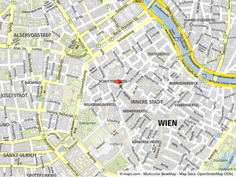 In unmittelbarer Nähe der Wohnung finden sich diverse Einkaufsmöglichkeiten, Supermärkte, Restaurants, das Café Central, diverses Kulturangebot, das Burgtheater und ideale Anbindungen an den öffentlichen Verkehr (U3 Herrengasse, U2 Schottentor, Buslinie 1A, Straßenbahnlinien 1, 71 und D).