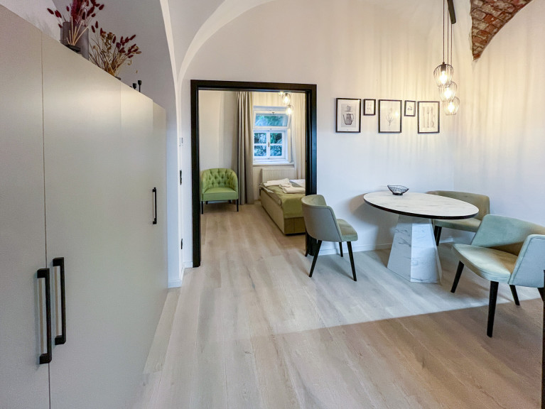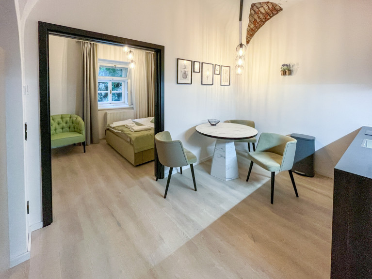 Inmitten der sanften Hänge am Leopoldsberg, umgeben von Weingärten und nur einen Steinwurf von der Donau entfernt, liegt der „Freihof“ – ein Wohnprojekt, das historischen Charme mit modernem Lebensgefühl verbindet. Hier finden Sie einen Ort zum Ankommen und Aufatmen, mit herrlichen Ausblicken und vielfältigen Möglichkeiten zur Erholung. Ob bei einem Spaziergang durch die Reben, einem Besuch im Heurigen oder beim Schwimmen in der nahegelegenen Kuchelau – das Leben spielt sich hier in der Natur ab.Das Gebäude selbst, ein historisches Juwel aus dem Jahr 1455, wurde mit viel Liebe zum Detail revitalisiert. Die umfassende Sanierung vereint alte Bausubstanz mit hochwertiger, zeitgemäßer Ausstattung. Besonders eindrucksvoll: die charakteristischen Kreuzgewölbe, die jeder Wohnung eine ganz besondere Atmosphäre verleihen. Noch vier exklusive Einheiten stehen derzeit zur (befristeten) Vermietung.