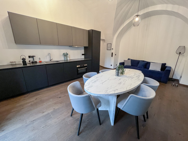 Inmitten der sanften Hänge am Leopoldsberg, umgeben von Weingärten und nur einen Steinwurf von der Donau entfernt, liegt der „Freihof“ – ein Wohnprojekt, das historischen Charme mit modernem Lebensgefühl verbindet. Hier finden Sie einen Ort zum Ankommen und Aufatmen, mit herrlichen Ausblicken und vielfältigen Möglichkeiten zur Erholung. Ob bei einem Spaziergang durch die Reben, einem Besuch im Heurigen oder beim Schwimmen in der nahegelegenen Kuchelau – das Leben spielt sich hier in der Natur ab.Das Gebäude selbst, ein historisches Juwel aus dem Jahr 1455, wurde mit viel Liebe zum Detail revitalisiert. Die umfassende Sanierung vereint alte Bausubstanz mit hochwertiger, zeitgemäßer Ausstattung. Besonders eindrucksvoll: die charakteristischen Kreuzgewölbe, die jeder Wohnung eine ganz besondere Atmosphäre verleihen. Noch vier exklusive Einheiten stehen derzeit zur (befristeten) Vermietung.