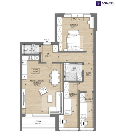 Top 23: Nordwestseitig ausgerichtete 4-Zimmer-Wohnung mit 6m² großen Loggia!