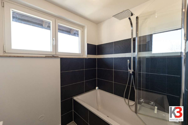 Der helle Wohn- und Essbereich, eine separate Küche mit Speis, Elternschlafzimmer, zwei Kinderzimmer bieten hohen Wohnkomfort. Badezimmer mit Fenster und Badewanne, Waschmaschinenanschluss, separates WC, Garderobe.