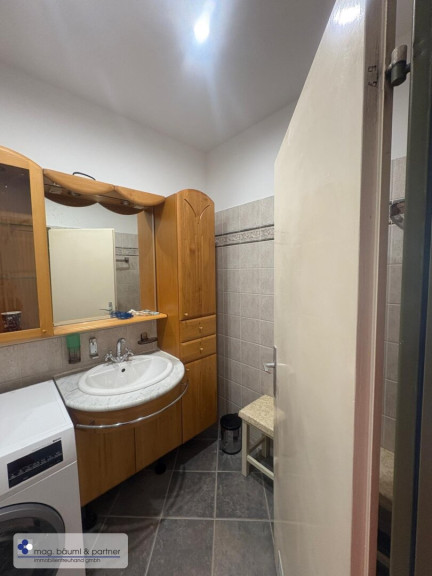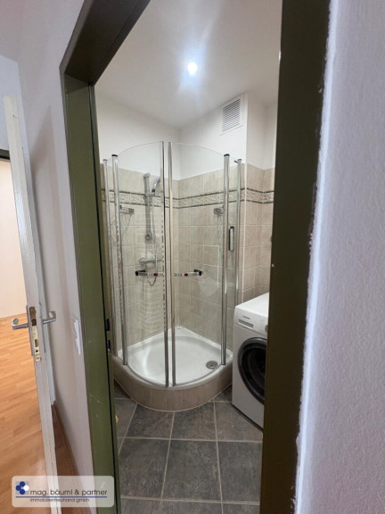 - Badezimmer mit Dusche und Waschmaschineanschluss