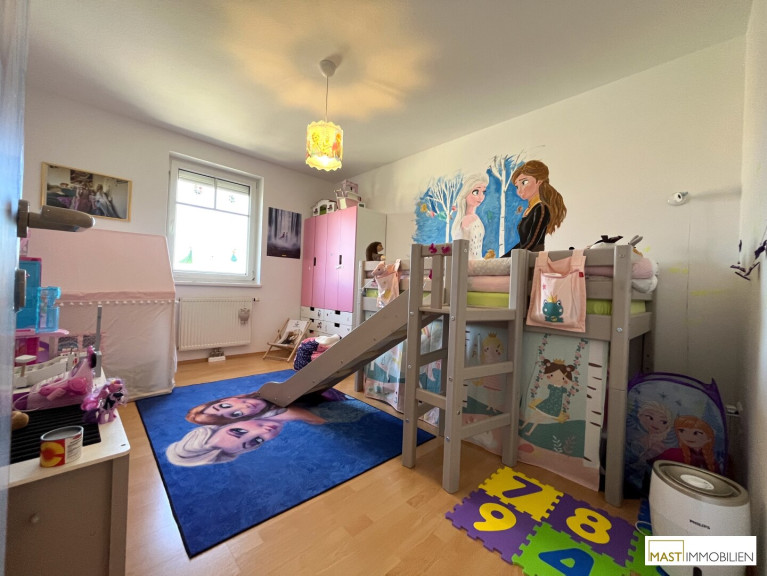 Nach Eintritt in die Wohnung gelangen Sie in ein großzügiges Vorzimmer mit ausreichend Platz für Ihre Garderobe. Das aktuelle Kinderzimmer umfasst eine Fläche von ca. 15 m² und ist direkt vom Vorzimmer aus begehbar. Das separate WC inkl. Waschbecken & Badezimmer ist ebenfalls vom Vorzimmer aus begehbar. Das optimal aufgeteilte Wohnzimmer bietet einen direkten Zugang auf die südlich ausgerichtete Freifläche (Balkon - ca. 4,50 m²). Bei einer teilweisen Sanierung der Wohnung, wurde die alte Küche gegen eine Neue inkl. "DIETER KNOLL Collection" Geräte ersetzt (Wert der Küche liegt bei ca. 20.000,--). Das Elternschlafzimmer mit einer Fläche von ca. 13,40 m² ist vom Wohnzimmer aus begehbar.