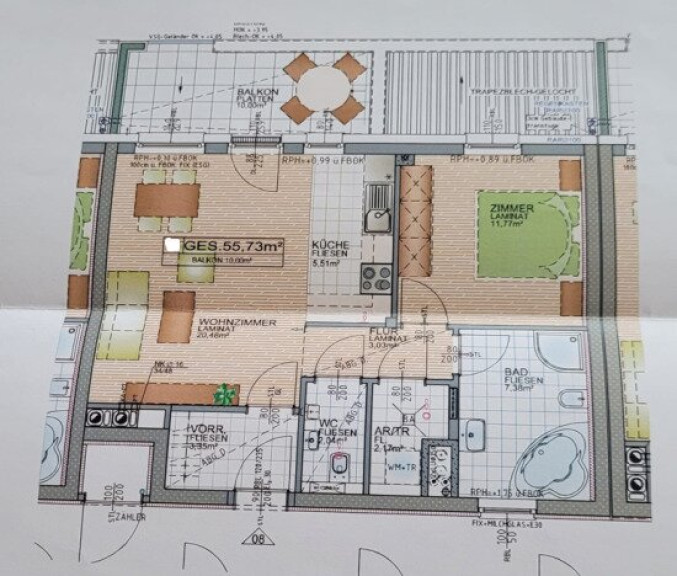 55,73m2 Wohnfläche zzgl. 10,00m2 Balkon,
