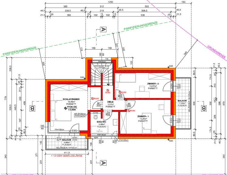 Estrichboden, Zentralheizung, Dusche, Badewanne, Parkplatz