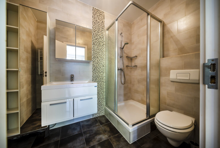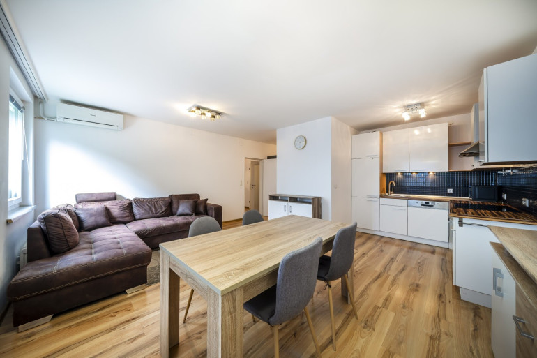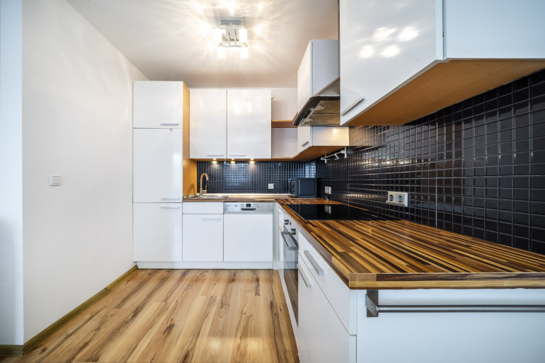 Fliesen, Laminatboden, Gas, Zentralheizung, Wohnküche / offene Küche, Personenaufzug, Südbalkon, Dusche, Parkplatz, Wasch/Trockenraum