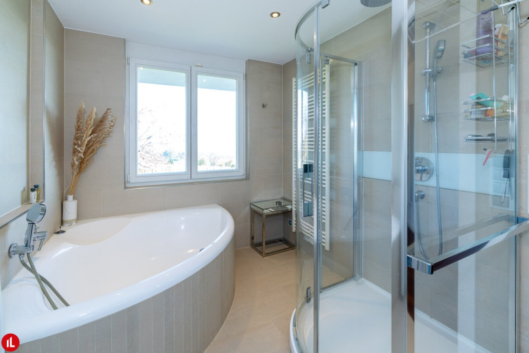 Komfort wird hier großgeschrieben: Diese Wohnung verfügt über zwei moderne Badezimmer sowie drei separate WCs, die den Alltag für Groß und Klein erleichtern. Zwei private Stellplätze garantieren stressfreies Parken direkt in der hauseigenen Garage.