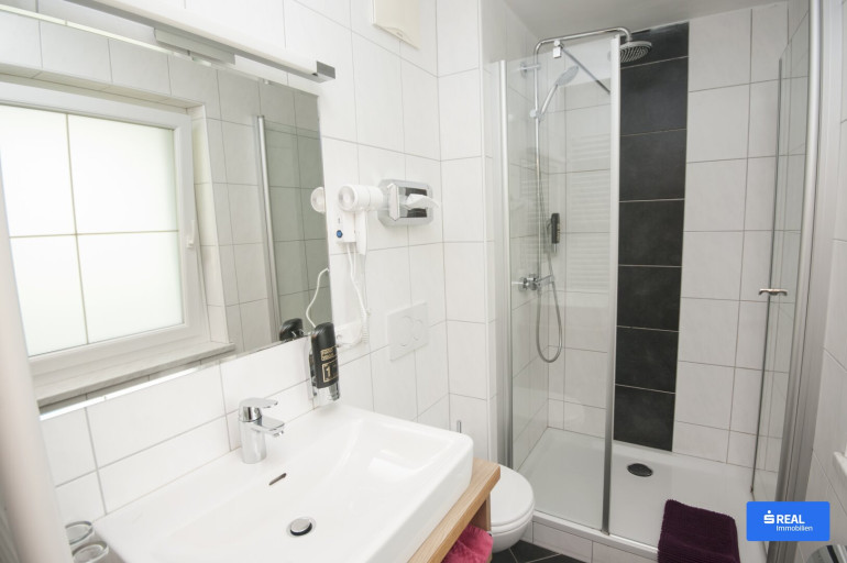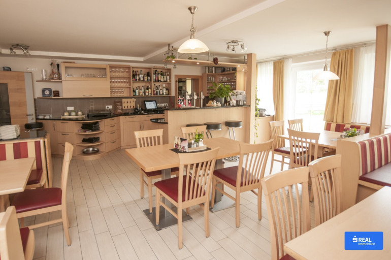 Im Erdgeschoss befinden sich Gastraum inkl. Bar, Stüberl, Profiküche, Sanitär- und Lagerräume. Die oberen beiden Stockwerke beherbergen 7 Gästezimmer mit Bad, ein Privatbereich sowie großzügige Balkone mit herrlichem Ausblick. Eine Terrasse und eine überdachter Laube bietet weitere Sitzplätze im Freien.