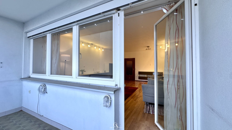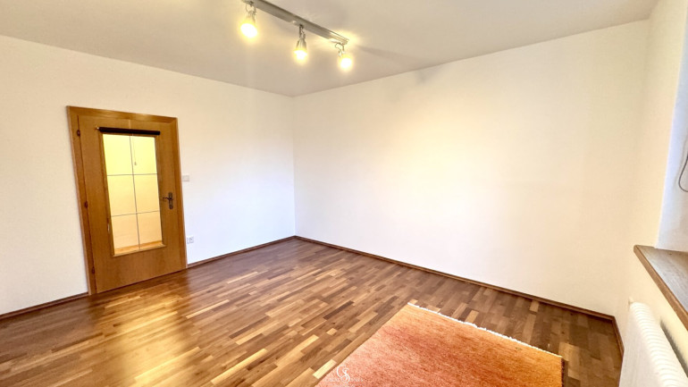 Das Wohnzimmer ist der zentrale Bereich der Wohnung und öffnet sich direkt zur südwestlich ausgerichteten Loggia – perfekt für gemütliche Sonnenstunden. Im Wohnzimmer sowie im Gang sind praktische Schränke verbaut, die optisch gut in den Raum passen und sofort genutzt werden können. Dezente, in der Wand integrierte LED-Elemente bringen zusätzlich eine angenehme Atmosphäre.