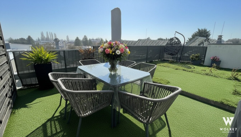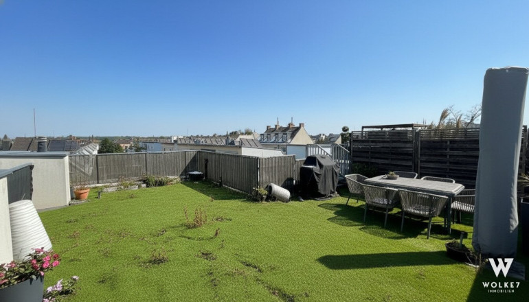 Diese stilvolle Dachgeschosswohnung bietet ein außergewöhnliches Wohngefühl, das moderne Architektur mit großzügigen Freiflächen verbindet. Auf ca. 77,52 m² Wohnfläche präsentiert sich die Wohnung in neuwertigem, sehr gepflegtem Zustand und überzeugt durch eine offene Atmosphäre. Das absolute Highlight ist die ca. 55 m² große Dachterrasse, die vielfältige Nutzungsmöglichkeiten für Entspannung, Geselligkeit oder ruhige Stunden unter freiem Himmel bietet. Die Gesamtfläche beträgt ca. 141,23 m² und unterstreicht den großzügigen Charakter dieser Immobilie. Das Atrium bietet eine geschützte Sitzecke für entspannte Morgenstunden, ergänzt durch die hochwertige Neubauqualität aus 2018, die sich in modernen Materialien und einem durchgehend sehr guten, neuwertigen Zustand widerspiegelt.