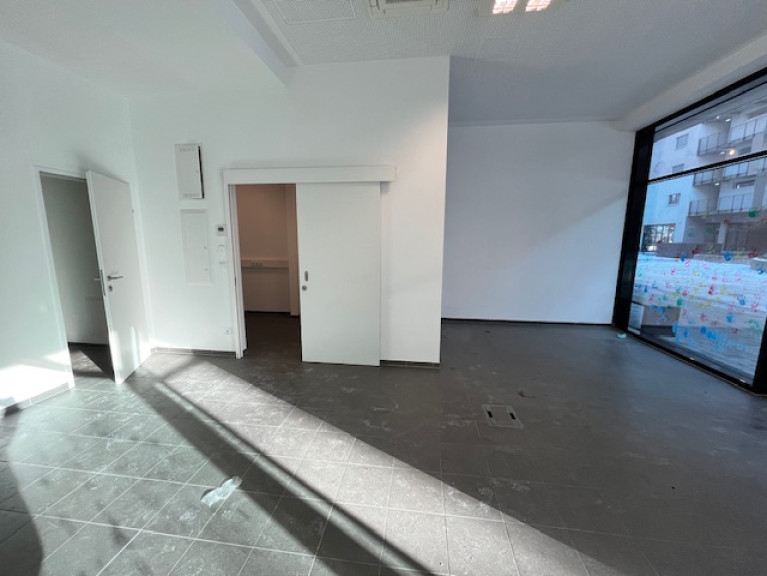 Die großzügige Fensterfront sorgt für viel Tageslicht und schafft eine helle, angenehme Arbeitsatmosphäre. Durch die Lage im Erdgeschoss ist das Büro bzw. die Geschäftsfläche bequem zugänglich und bietet zugleich gute Sichtbarkeit.
