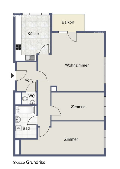 - einem schönen Balkon, auf den man vom Wohnzimmer aus gelangt.