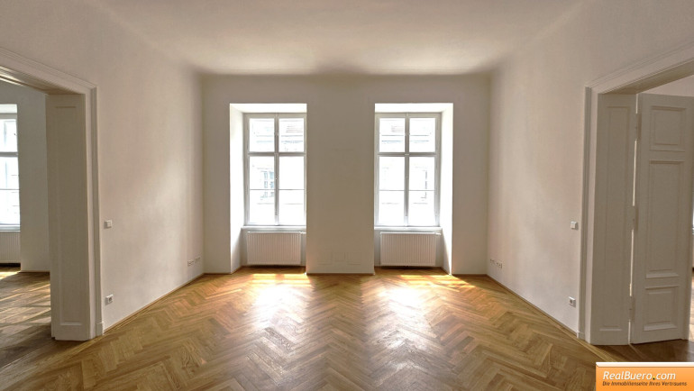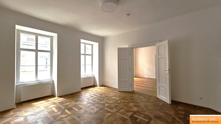 - Wohnzimmer mit Tafelparkett - gassenseitig