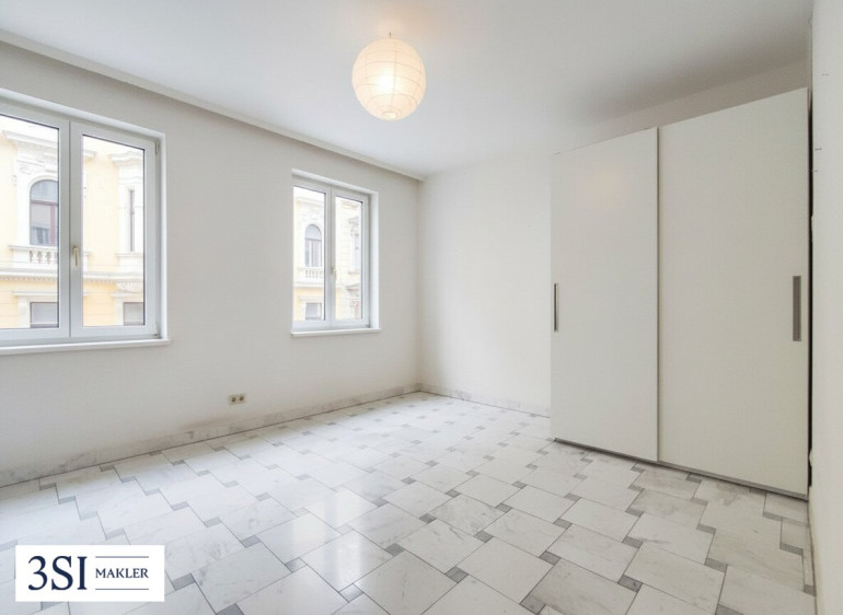 Das Gebäude besticht durch seinen zeitlosen Charme und die ausgezeichnete Lage im Herzen von Wien. Diese weitläufige Wohnung bietet auf großzügigen 115 m² Wohnfläche einen lichtdurchfluteten Wohnsalon mit beachtlichen 47 m². Klassisch elegante Flügeltüren und helle Marmorböden schaffen ein beeindruckendes Raumgefühl und unterstreichen die ruhige, klare Atmosphäre.