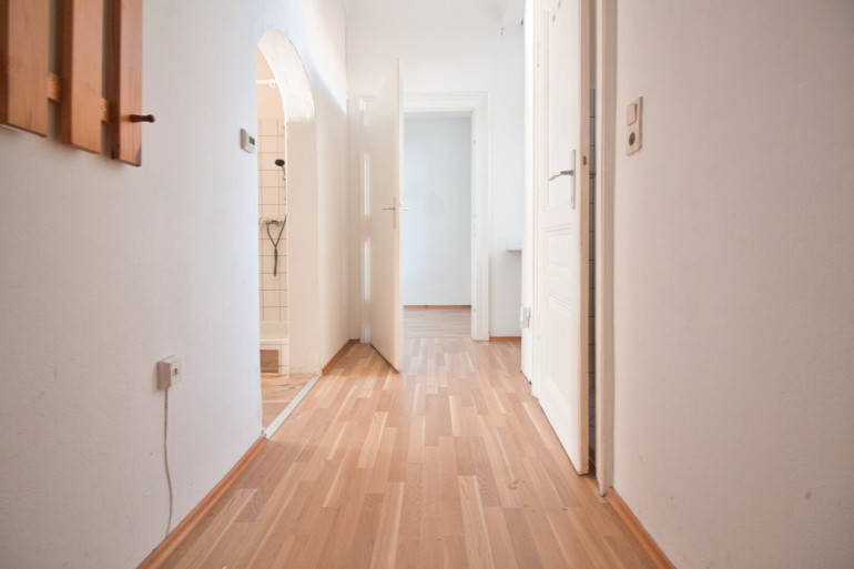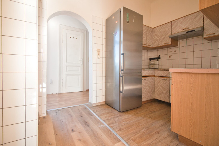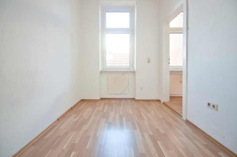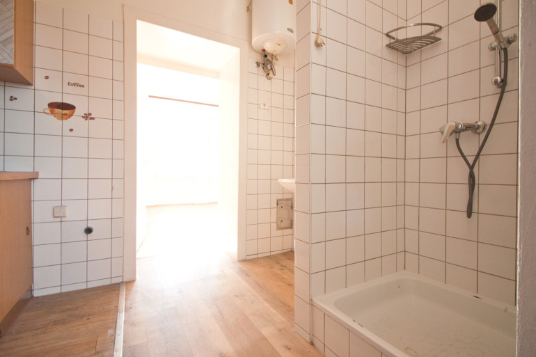 Die Wohnung befindet sich im 4. Stock OHNE Lift. Sie ist in einem leicht renovierungsbedürftigem Zustand. Der Vorraum erschließt das separate WC mit Fenster, das Kabinett sowie die Küche mit Dusche und Waschbecken. Über die Küche gelangt man weiter in das äußerst helle Wohnzimmer mit schönem Ausblick.