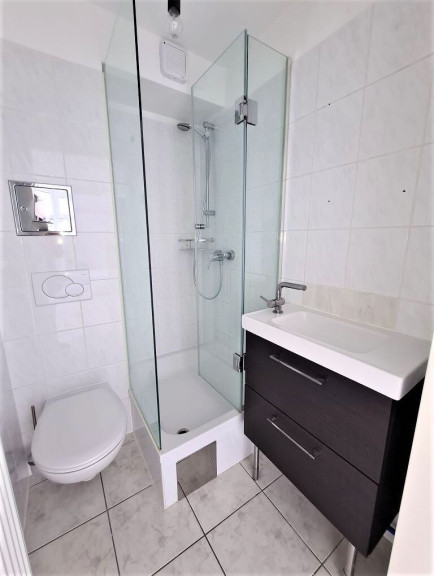 + Badezimmer mit Dusche, Waschtisch und WC
