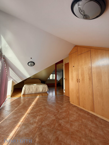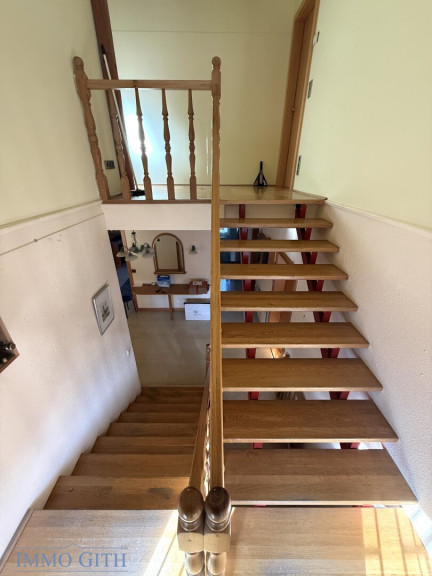 Im Obergeschoss befinden sich zwei Schlafzimmer, eines davon mit direktem Balkonzugang.