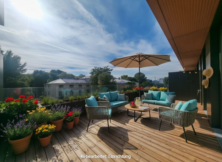 - große Südterrasse mit Wasseranschluss und Bewässerungsanlage