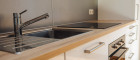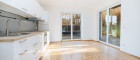 Großflächige Fensterfronten sorgen für ein helles, freundliches Ambiente – die integrierte Küche ist hochwertig ausgestattet mit Ceranfeld, Backofen, Geschirrspüler, Kühlschrank, Gefrierschrank, Dunstabzug und Spüle. - Modernes Bad & separates WC mit Fenster