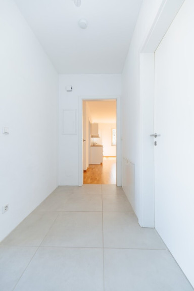 Vom einladenden Vorraum erreichen Sie alle Räume zentral: das edel verflieste Badezimmer mit bodenebener Dusche und Waschmaschinenanschluss, das separate WC mit Fenster, einen praktischen Abstellraum sowie die beiden hellen, separat begehbaren Zimmer.