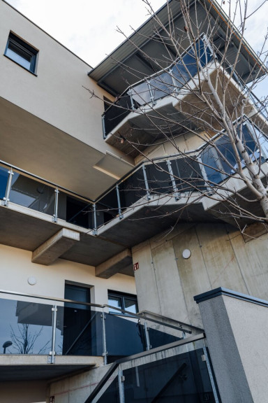 Hochwertige Architektur mit modernem Design, Glas-Absturzsicherungen, offenem Stiegenhaus, Lift und direktem Zugang zur Tiefgarage – für Wohnen mit Stil und Privatsphäre. - Großzügige Wohnfläche mit 62,06 m²