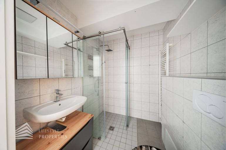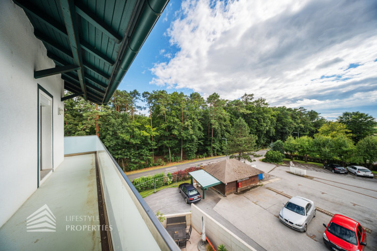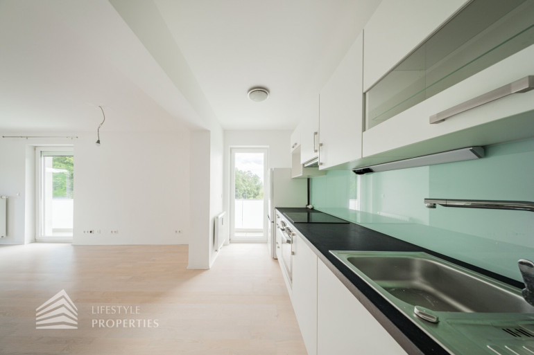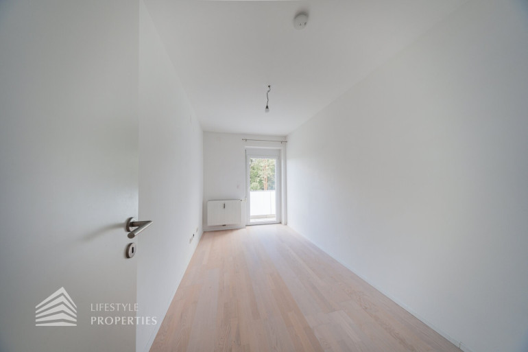 Die Immobilie befindet sich im 2. OG eines vierstöckigen Gebäudes und hat ca. 66,07 m². Sie betreten die praktisch aufgeteilte 3-Zimmer Wohnung und gelangen in einen geräumigen Vorraum mit ca. 9,71 m². Dieser bietet aufgrund seiner Größe ausreichend Platz für jegliche Garderobe. Unmittelbar auf der linken Seite finden Sie zwei Türen, welche zum Badezimmer und zum ersten Schlafzimmer der Wohnung führen. Das Badezimmer verfügt über eine Dusche, eine Toilette und einen Waschmaschinenanschluss. Das Schlafzimmer ist ca. 11,17 m² groß. Am Ende des Vorraumes führt eine weitere Tür zu einem Gang, welcher sowohl in die Wohnküche als auch zum zweiten Schlafzimmer führt. Letzteres hat ca. 8.98 m², die Wohnküche ca. 22,35 m². Die Küche ist vom Wohnbereich des Zimmers räumlich gut abgegrenzt. Eine Tür in der Küche führt zu einem kleinen aber praktischen Abstellraum, welcher sich ideal als Speisekammer anbietet. Sowohl die beiden Schlafzimmer, als auch die Wohnküche, haben einen eigenen Zugang zu dem großartigen, ca. 21,33 m² großen Balkon. Dieser stellt ohne Zweifel mit seinem Blick ins Grüne das Highlight der wunderbaren Wohnung dar. Sämtliche Zimmer sind mit einem wunderschönen Parkettboden, das Badezimmer mit hochwertigen Fliesen verlegt.