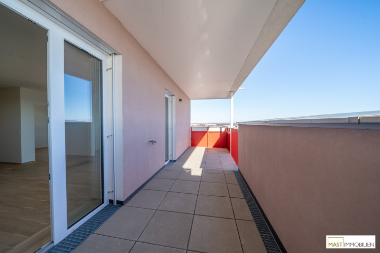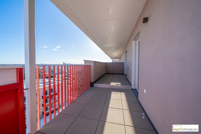 Die Wohnung befindet sich im 7. OG und verfügt über 57,93 m² Wohnfläche + einen 8,32 m² großen Balkon + eine 7,96 m² große Terrasse.