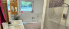 Neben einem großzügigen Schlafzimmer bietet die Wohnung zwei vielseitig nutzbare Räume – ideal als Kinderzimmer, Büro oder Hobbyraum. Das stilvolle Badezimmer ist mit Dusche (Regenbrause), Badewanne, Doppelwaschtisch und WC ausgestattet; ein zusätzliches Gäste-WC befindet sich im Eingangsbereich.
