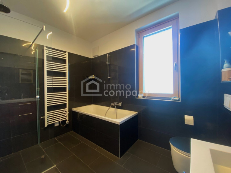 Die Doppelhaushälfte verfügt weiters über 3 Zimmer im OG und einen Schrankraum und auch noch über ein großzügiges Badezimmer mit Dusche und Badewanne. Hochwertige Parkettböden in den Wohnräumen sowie Fliesen in den Nassbereichen sorgen für ein modernes Wohnambiente. Ein komfortabler Balkon kann von 2 Zimmern im OG betreten werden.
