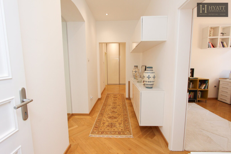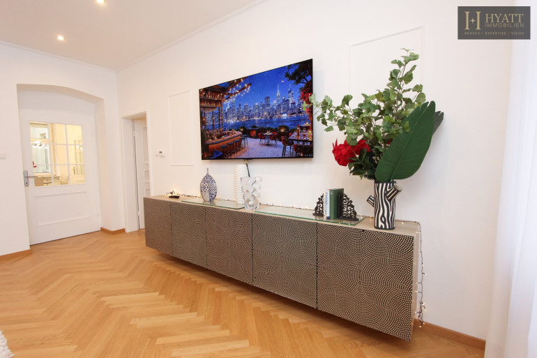 In einem prachtvollen Jahrhundertwendehaus präsentiert sich diese außergewöhnlich elegante Altbauwohnung im 3. Obergeschoss, bequem und barrierefrei per Lift erreichbar. Die 2022 hochwertig sanierte 3-Zimmer-Wohnung verbindet den klassischen Wiener Altbaucharme mit modernem Wohnkomfort auf höchstem Niveau – eine seltene Kombination in dieser Qualität.