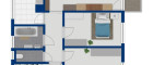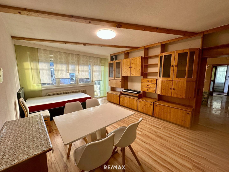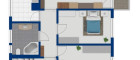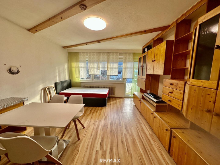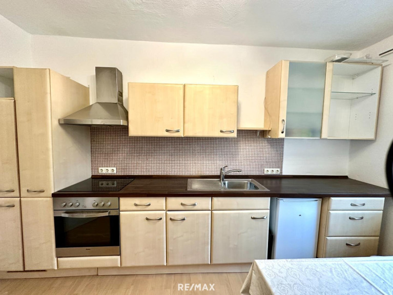 - 1 Wohn-Esszimmer mit Zugang auf einen Balkon, Küche mit Speis
