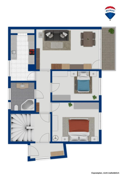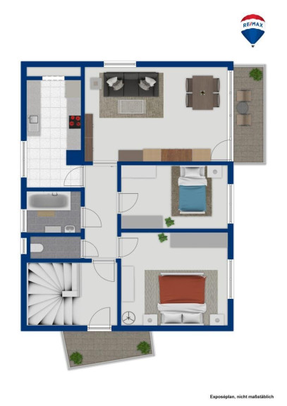 Die Wohnungen im EG und 1. OG verfügen über einen Balkon. Ein weiterer kleiner Balkon ist über das Stiegenhaus im 1. Stock erreichbar. Das Untergeschoss kann bei Bedarf als dritte Wohneinheit genutzt werden.