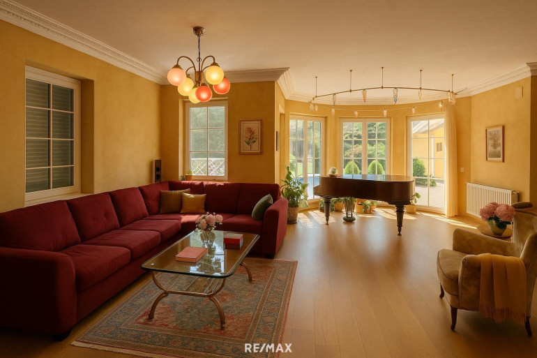 Für körperliches Wohlbefinden sorgt der großzügig gestaltete Fitness- und Wellnessbereich mit Sauna – ein Rückzugsort für entspannte Momente im eigenen Zuhause. Der beheizbare Wintergarten mit Glasdach ist ein weiteres Highlight und verbindet Natur und Architektur auf eindrucksvolle Weise – ideal für alle Jahreszeiten.
